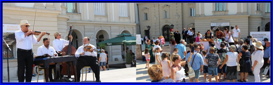 2019. augusztus 20-án ismét a keszthelyi Festetics-kastélynál kötöttünk ki, ahol a 17-ei felállásban ezalkalommal 10 percet zenéltünk a városi megemlékezés keretében, ahol megtiszteltetés volt számunkra egyházi és világi prominensekkel egy színpadon lenni a Szent István-féle magyar államalapítás és az újkenyér napján. Az ünnepi beszédek után ökumenikus áldás következett a katolikus, református és evangélikus egyház helyi képviselői részéről, majd a mi programunk, mely közben már az újkenyeret meg lehetett kóstolni. Prímásunk, Schreiner Jenő a búzához, gabonához, kenyérhez illő szövegű dalokat válogatott ez alkalomra, köztük szűkebb hazánkból, Zala megyéből is. Az ünnepséget a Keszthely városi média érdeklődése övezte.