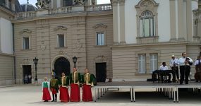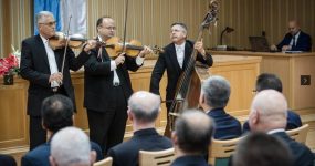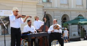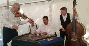 2019 május 11-én három program is várta a zenekar tagjait. Délelőtt a keszthelyi Festetics-kastély bejáratánál vendégcsalogatónak muzsikált négyesben a csapat, lovas huszárok társaságában is az Emlékhelyek Napja rendezvénysorozat keretében, a képen éppen moldvai zenét. Schreiner