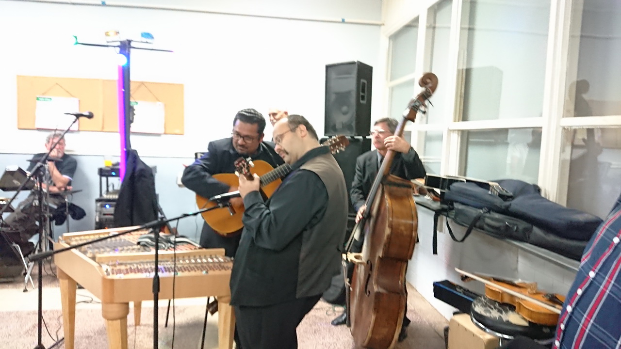 A mi műsorrészünkhöz Albert Elemér roma cimbalmos barátunk segítségét kértük, így a söjtöri és környékbeli beáscigány (hagyományosan teknővájó eredetű) emberek, családok mellett ő képviselte a cigányságnak egy másik ágát: a muzsikus cigányságot, akiket romungróknak, vagyis magyar cigányoknak is mondanak. Schreiner Jenő vezetőnk, prímásunk a rendezvény jellegének megfelelően igyekezett olyan dallamokat kiválasztani és olyan meneteket játszani, amik kapcsolódnak a cigánysághoz akár a folklór, akár az éttermi cigányzene műfajából, de eredeti profilunknak megfelelően magyar csárdásdallam is elhangzott. Kovács Péter pedig tudván, hogy a faluban és a környéken beáscigányok laknak, kifejezetten az ő dallamaikat válogatta összeállításába nem csak Zala megyéből, de a Dunántúlról máshonnan is. Ebben a részben Péter prímtamburázott Elemér gitárkíséretével és Zoltán bőgőzése mellett.