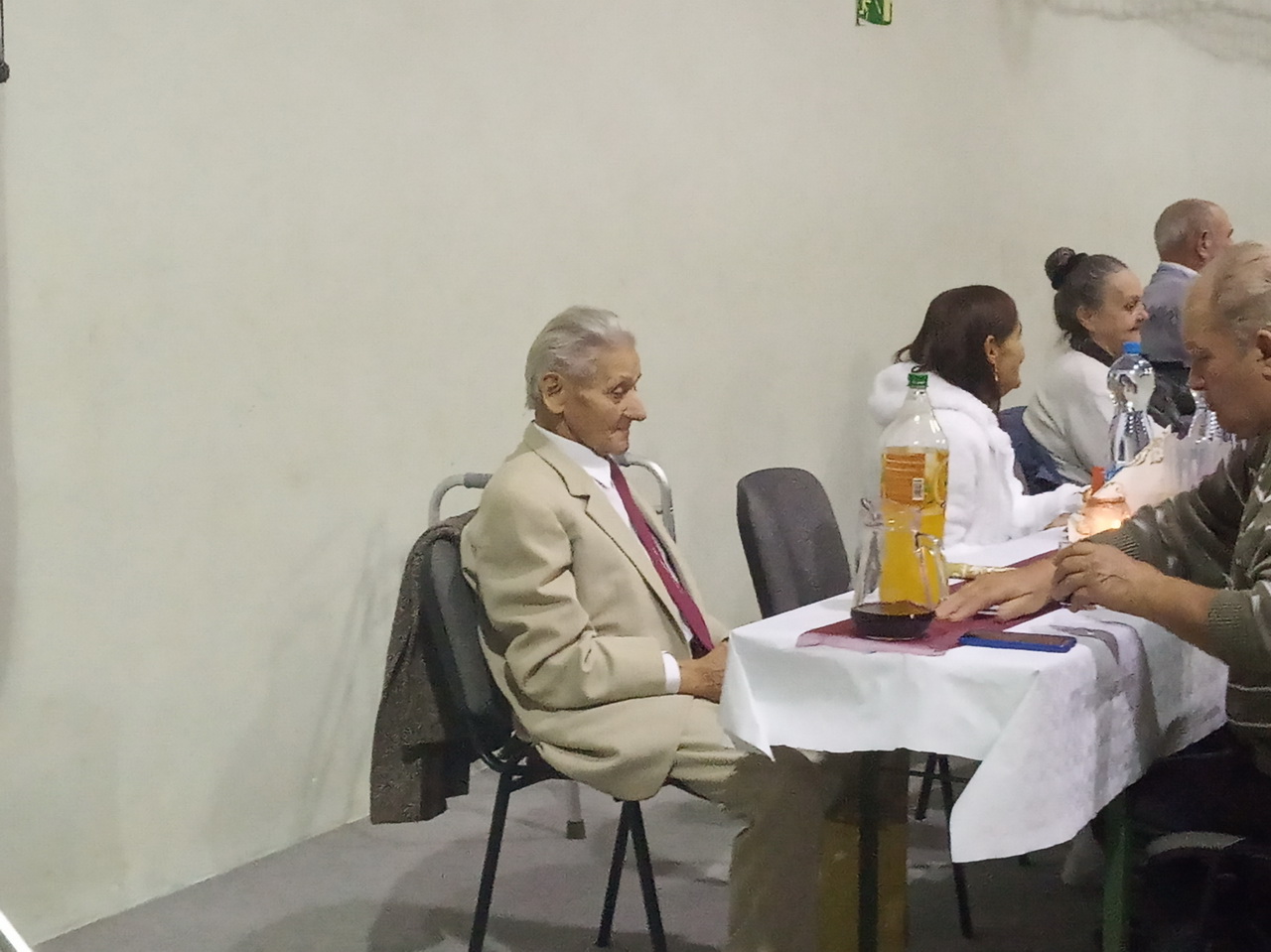 A képen látható Baranyai István 88 éves cimbalmos a rendezvény legidősebb férfi résztvevője volt. Bár már aktívan nem zenél, a cimbalmát is eladta, de a minket ez alkalommal kiegészítő Albert Elemér által kezelt cimbalmot kipróbálta és később is láthatólag örömmel üdvözölte zenélésünket.